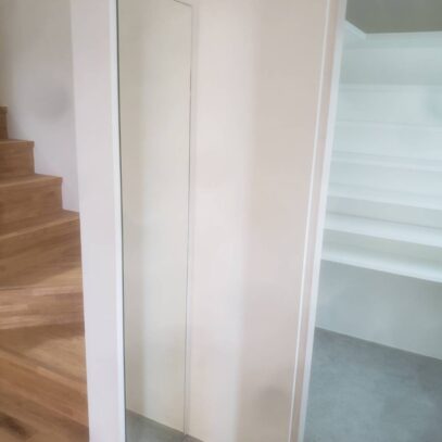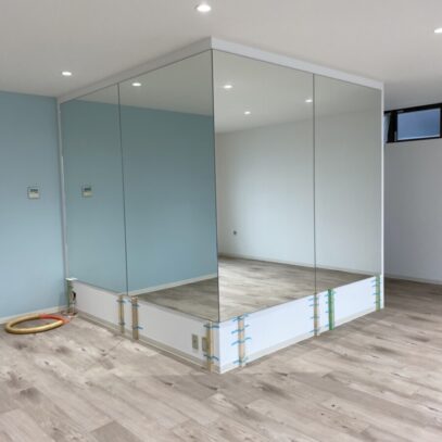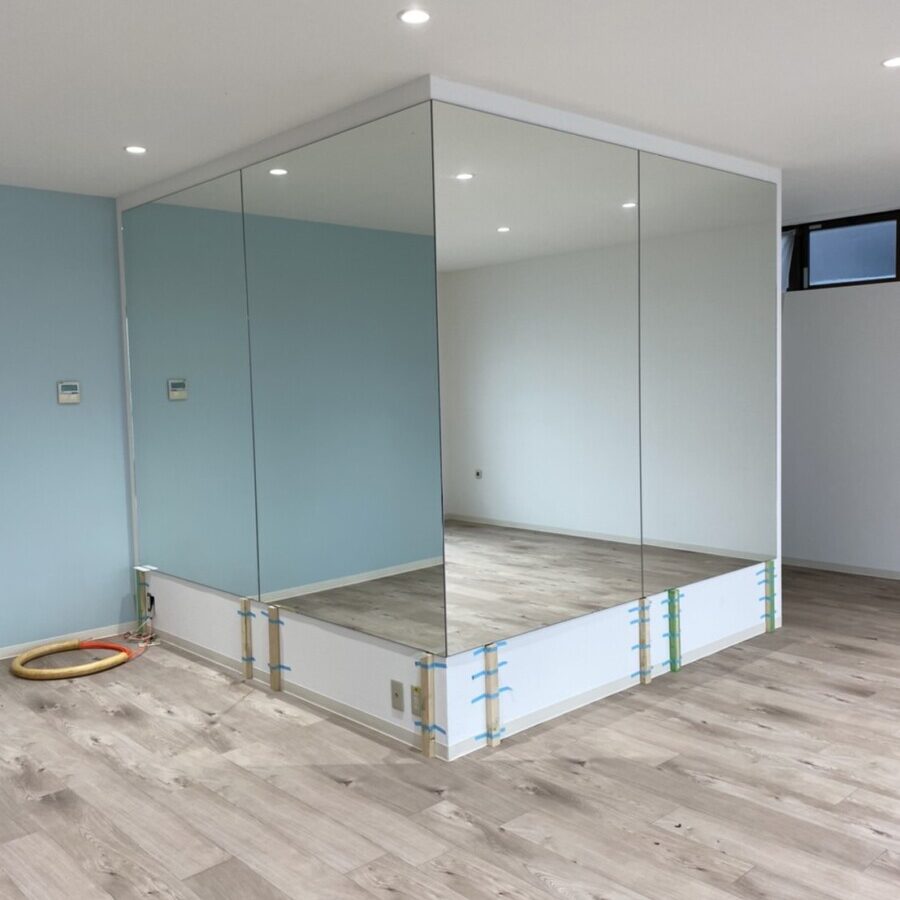 このような大型ミラーの連装貼りは、美しく正確に写し出すことが重要です。